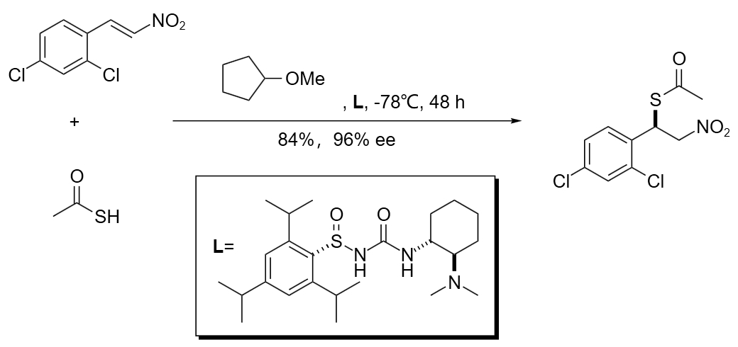 硫代乙酸可以與硝基烯烴發(fā)生加成反應(yīng),得到相應(yīng)的乙酸硝基硫醇酯類化合物。